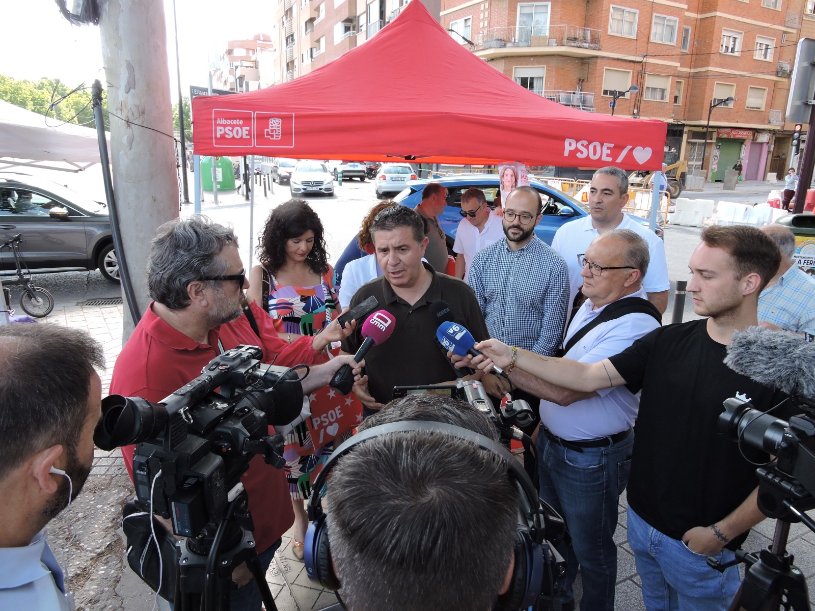 Albacete, 28 de mayo de 2024.- El secretario general provincial de PSOE-Albacete, Santi Cabañero, ha participado esta mañana en la capital en una mesa informativa ubicada en el tradicional mercadillo de “Los Invasores”, en el que ha estado acompañado por el secretario de organización, Fran Valera y por la portavoz socialista, Josefina Navarrete, dentro de la campaña a las elecciones europeas del próximo 9J que están realizando los socialistas por toda la provincia bajo el lema: “Más Europa, más PSOE”.