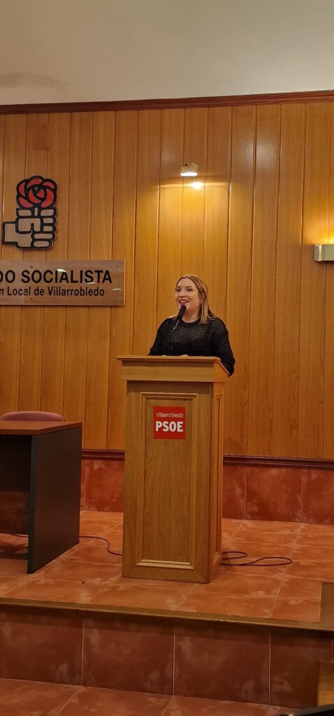 En este marco, la secretaria general anunció públicamente una muy buena noticia para la Agrupación: la conformación y reactivación de las Juventudes Socialistas en Villarrobledo. Arenas dedicó unas palabras de agradecimiento y reconocimiento a los jóvenes que dan este paso, subrayando que “no es fácil hoy dar un paso al frente, significarse políticamente y hacerlo, además, desde el socialismo”.