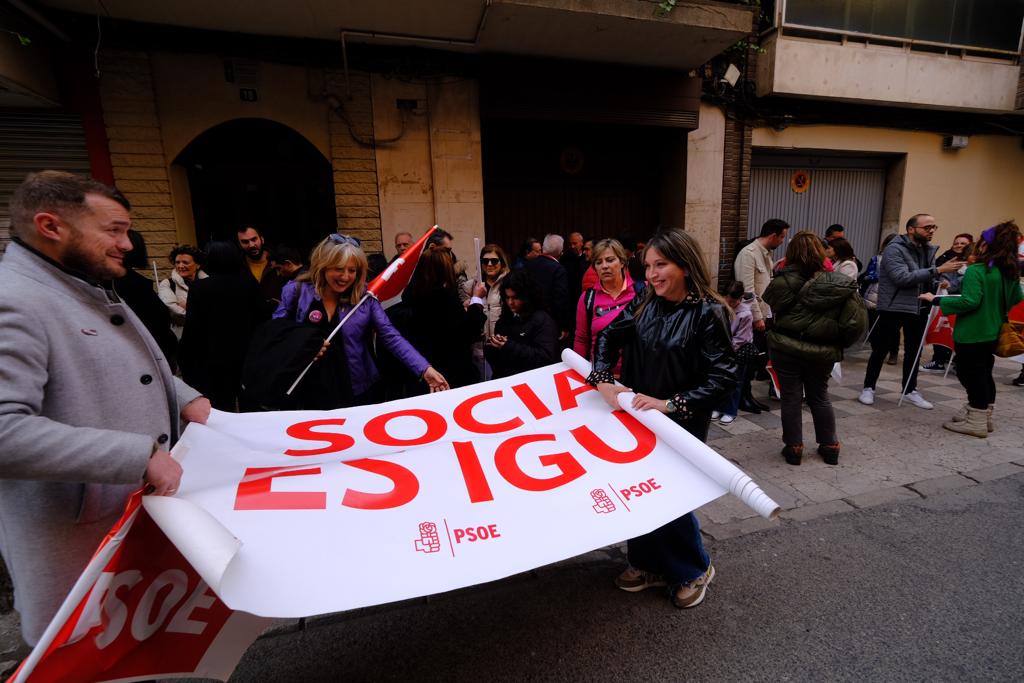 Con anterioridad a la participación de los miembros del Partido Socialista en la manifestación del 8M la Casa del Pueblo ha acogido la lectura del manifiesto en compañía de simpatizantes y afiliados. La vicesecretaria de Igualdad del PSOE en la provincia y también responsable de la Escuela de Pensamiento Feminista del partido, Amparo Torres, ha reclamado el camino que ha hecho el PSOE llevando las reclamaciones del movimiento feminista a la agenda política. “Tenemos una apuesta firme para que España sea un país donde hombres y mujeres sean iguales en dignidad y en derechos. Esta idea es absolutamente incompatible con la prostitución y la trata”, ha dicho.