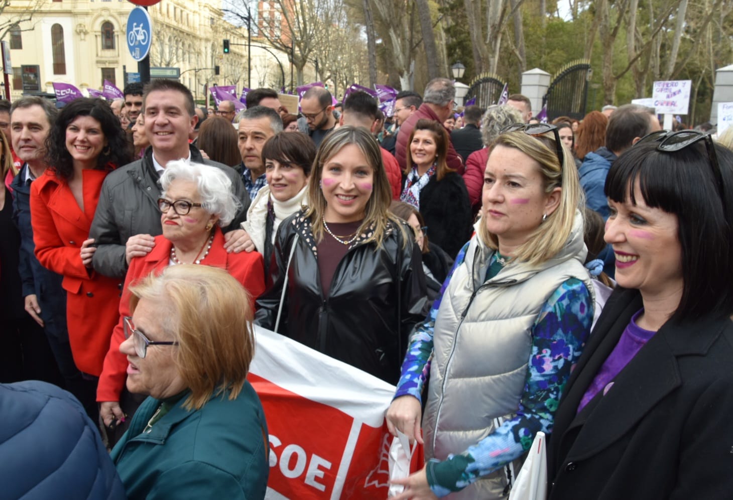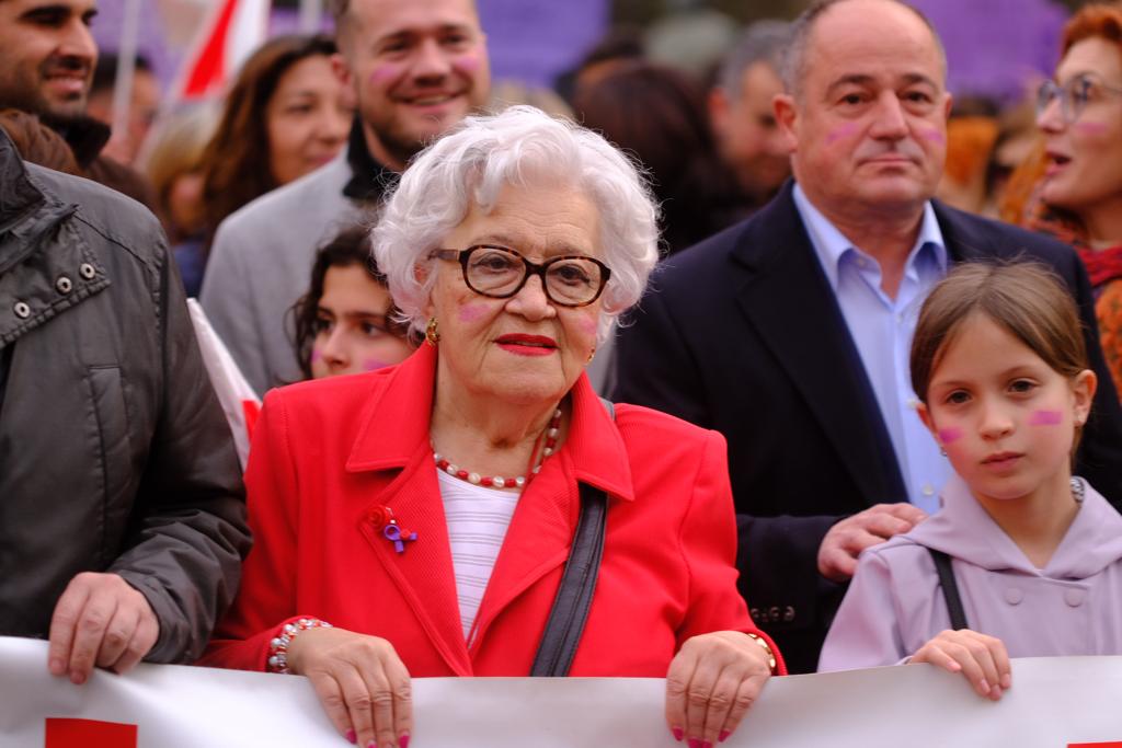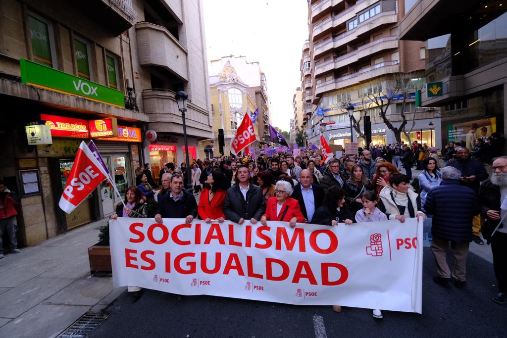 - La vicesecretaria de Igualdad, Amparo Torres, ha participado en la lectura el Manifiesto del PSOE llamando a la unidad del feminismo frente a la derecha, y apuntando a la violencia y la trata como futuras metas recordando que es un movimiento heterogéneo y pacífico con objetivos comunes.